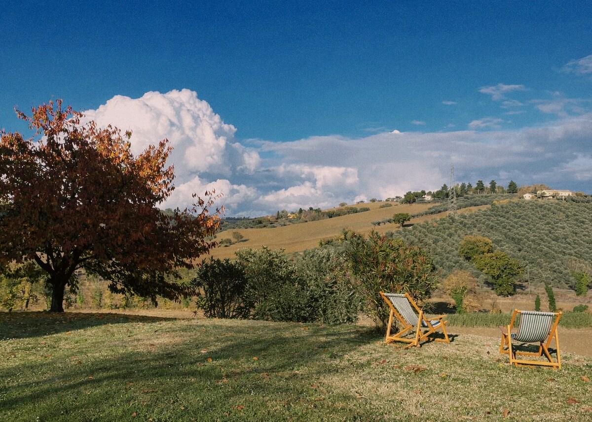 Casale Milleluci è una casa di campagna immersa nelle colline ondulate delle Marche, a pochi minuti dal mare di Senigallia. La proprietà è il frutto del restauro attento di un casale tradizionale, che fonde autenticità, luce e comfort contemporaneo. Gli interni sono ampi e luminosi, arredati in uno stile naturale e raffinato dove il legno, i tessuti morbidi e i dettagli selezionati con cura creano un'atmosfera rilassante. Ogni appartamento è pensato per offrire privacy e tranquillità, con aree esterne dedicate, spazi in giardino e viste aperte sulla campagna. Accogliamo i nostri ospiti con attenzione e ospitalità autentica, offrendo consigli personalizzati su spiagge, borghi storici, ristoranti locali e percorsi naturalistici. La proprietà dispone di parcheggio privato, Wi-Fi e ampie aree verdi ideali per le famiglie e per chi cerca una fuga tranquilla a contatto con la natura. Casale Milleluci è il luogo ideale per vivere la campagna marchigiana con comfort, semplicità e luce.